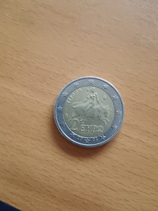 GREECE 2 EURO COIN 2002 with 'S' struck into one of the stars at the bottom.