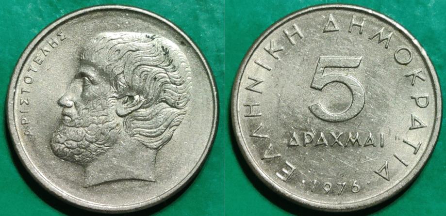Greece 5 drachmas, 1976 / 1,00 EURO !!!