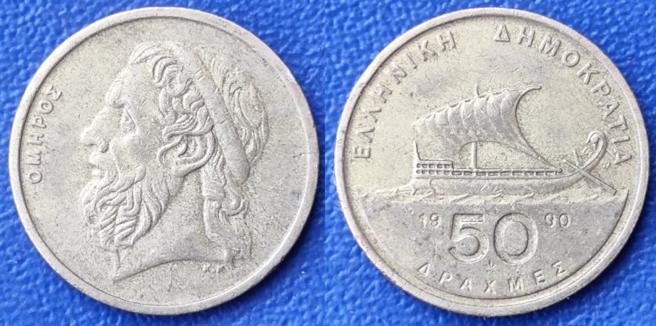 Greece 50 drachmas, 1990 Homer ***/ 1,30 EURO !!!