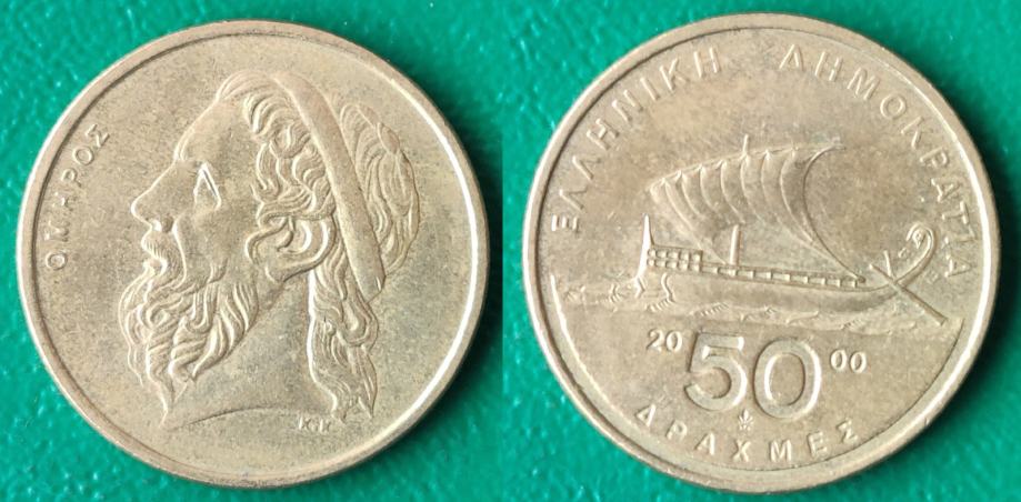 Greece 50 drachmas, 2000 Homer ***/ 1,30 EURO !!!