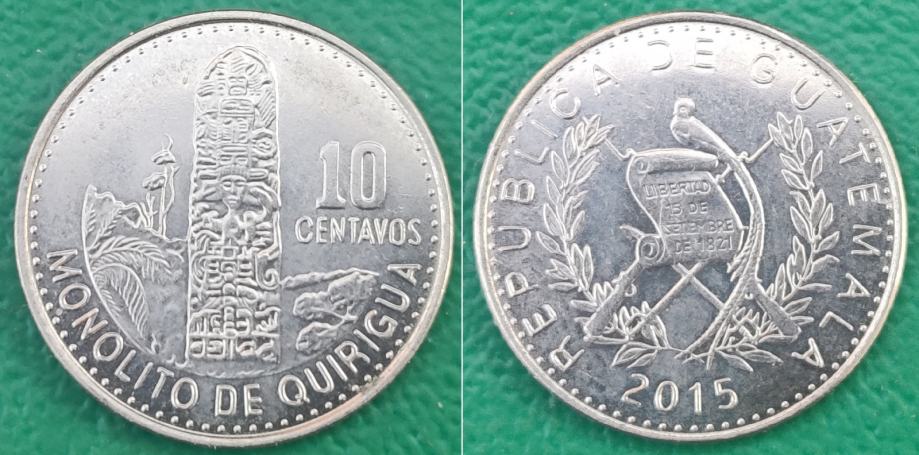 Guatemala 10 centavos, 2015 Mayan Pillar ruins of Quiriguá ***/