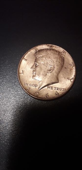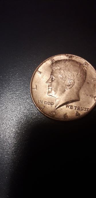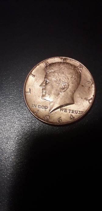 Half dollar Kennedy 1964 god prodajem.Silver 90 posto 12.5 gr. 30.61 mm.prodajem.