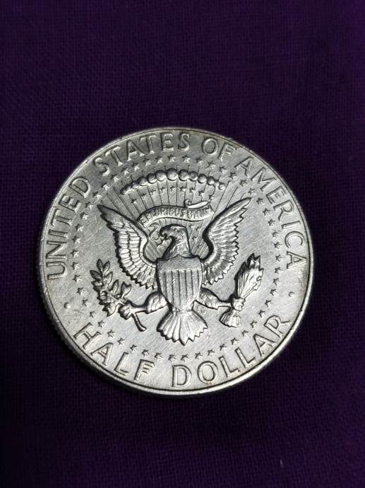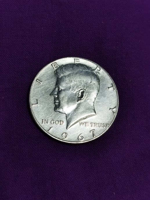 HALF DOLLAR kovanica s likom Kennedyja,1967 g. Težina 11,5g,srebro 0,400. Kovanicu dizajnirali Gilroy Roberts i Frank Gasparro,promjer 30,61 mm Odlično očuvano,0977220007