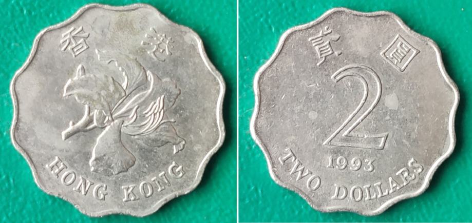 Hong Kong 2 dollars, 1993 / 1,00 EURO !!!