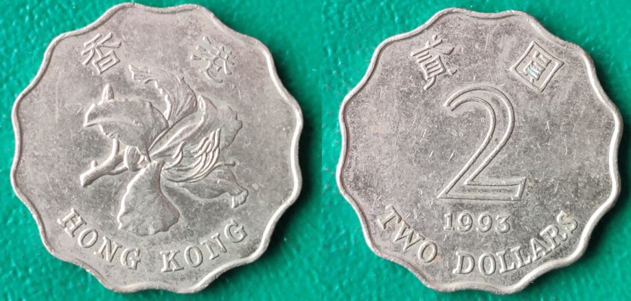 Hong Kong 2 dollars, 1993 / 1,00 EURO !!!