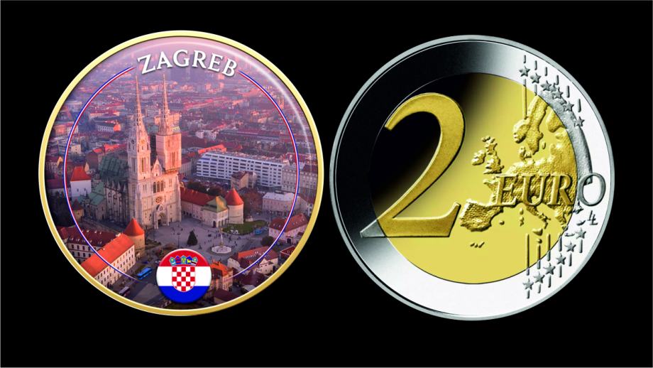 Kovanica od 2 eura s motivom u boji "Zagreb - Hrvatska"