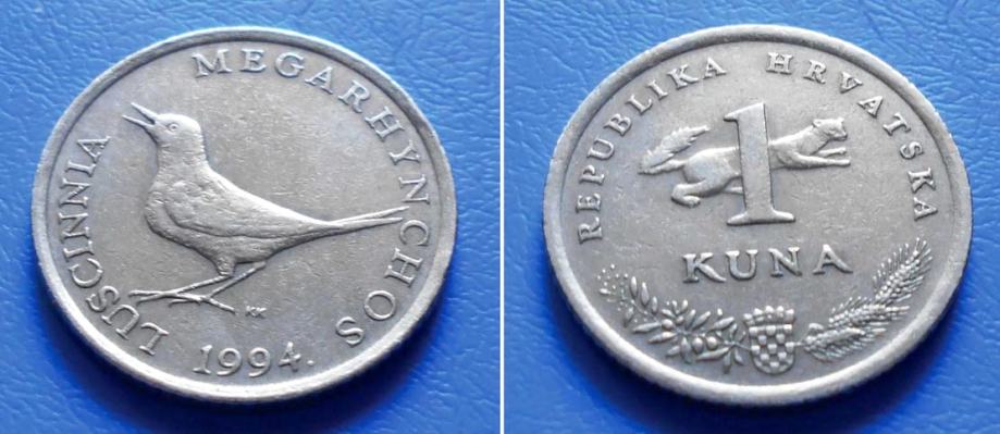 HRVATSKA CROATIA 1 KUNA 1994 KM: 20 – SLAVUJ (LUSCINNIA MEGARHYNCHOS)