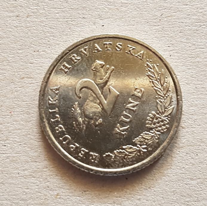HRVATSKA CROATIA 2 KUNE 2019 -TUNJ- ERROR- ZR-ZAOKRENUT REVERS, TIP 2