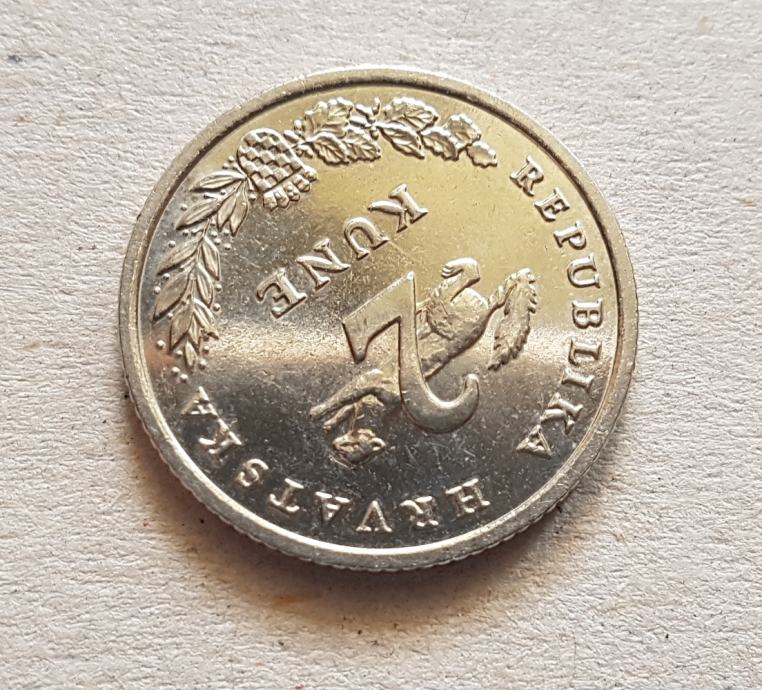 HRVATSKA CROATIA 2 KUNE 2019 -TUNJ- ERROR- ZR-ZAOKRENUT REVERS, TIP 4