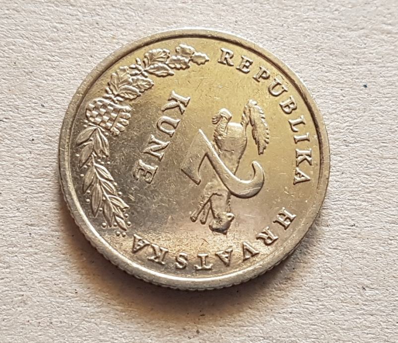 HRVATSKA CROATIA 2 KUNE 2019 -TUNJ- ERROR- ZR-ZAOKRENUT REVERS, TIP 5
