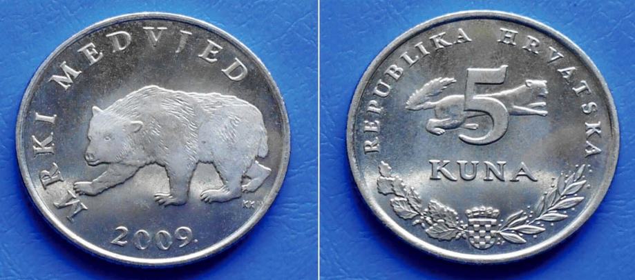 HRVATSKA CROATIA 5 KUNA 2009 KM: 11 – MRKI MEDVJED