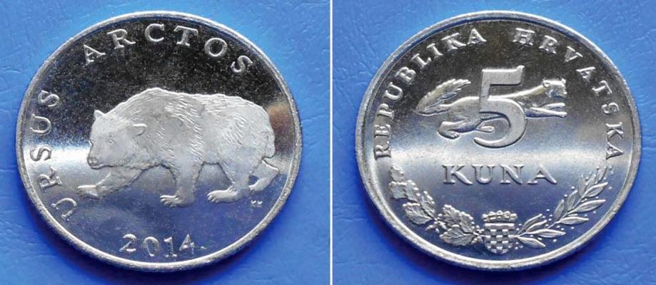 HRVATSKA CROATIA 5 KUNA 2014 KM: 23 – MRKI MEDVJED (URSUS ARCTOS)