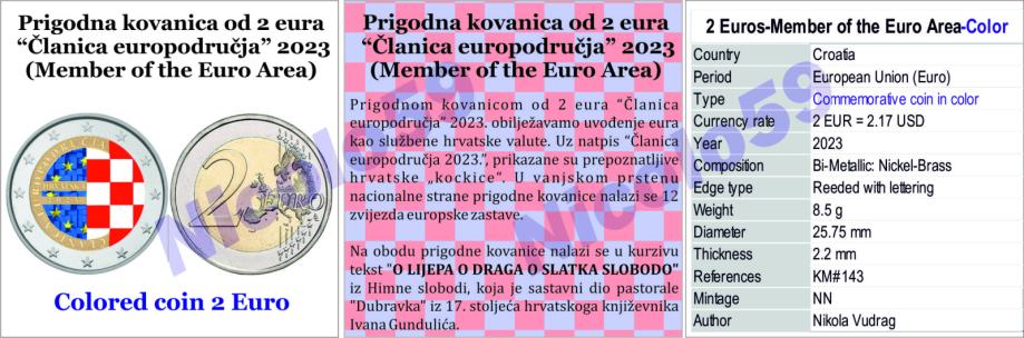 Hrvatska kovanica 2 eura 2023 u boji, UNC