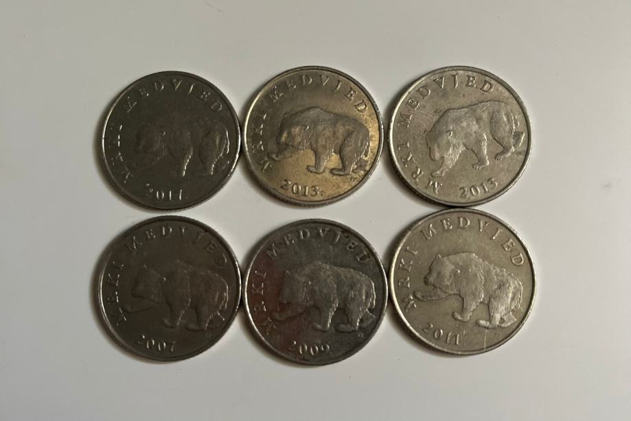 Prodajem kovanice od 5 kuna, mrki medvjed 2007.,2009.,2011.,2013.i 2017.godina.