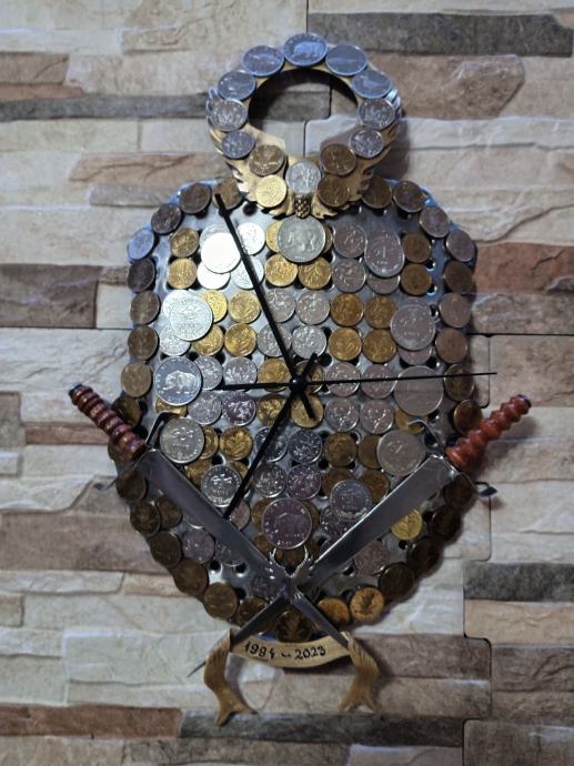 HRVATSKA KUNA-ZIDNI SAT RUČNI RAD-UNIKAT SVE KOVANICE KUNE I LIPE !!!!