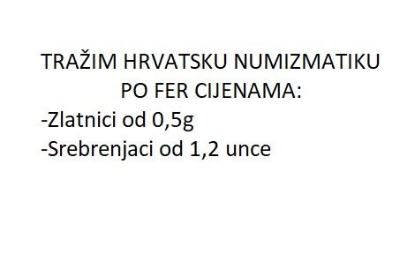 Tražim hrvatsku numizmatiku po fer i pristupačnoj cijeni, srebrenjake i zlatnike!