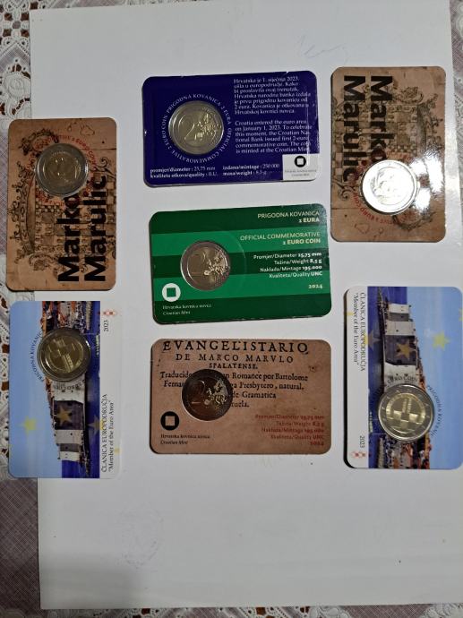-Marko Marulić 2024.godina-UNC,14 eura. Hrvatske Kovanice su u originalnoj ambalaži blister pakiranju nove moguća prodaja sve 3 izdane kartice u kompletu ili pojedinačno stvar dogovora. Upitati na broj mobitela 095 822 8933 ili putem SMS-a, Viber, Vhatsap, te putem njuskala. Moguća dostava na vašu adresu putem HP-a preporučenom pošiljkom,box now, ili putem Tiska +3 eura troškovi dostave . Pogledajte sve moje oglase.