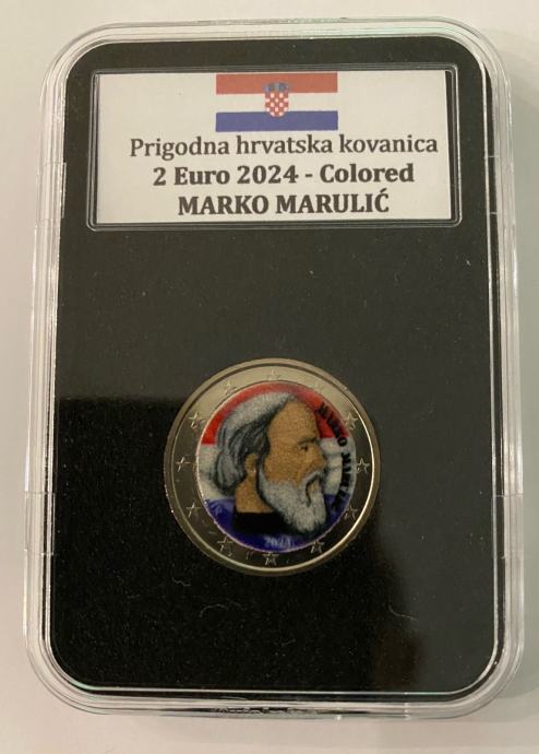 Najnovija hrvatska prigodna kovanica 2 Euro - Marko Marulic, obojani u lijepoj četrvtastoj kapsuli