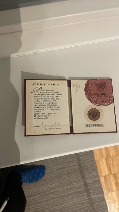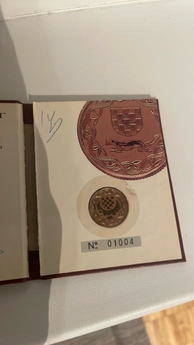 Prodajem kovanicu hrvatski povijesni novac 1 kune, rad prof. Ive Kerdića u bakru - ćistoće 1000/1000, težine 4,5 g. U original pakiranju.