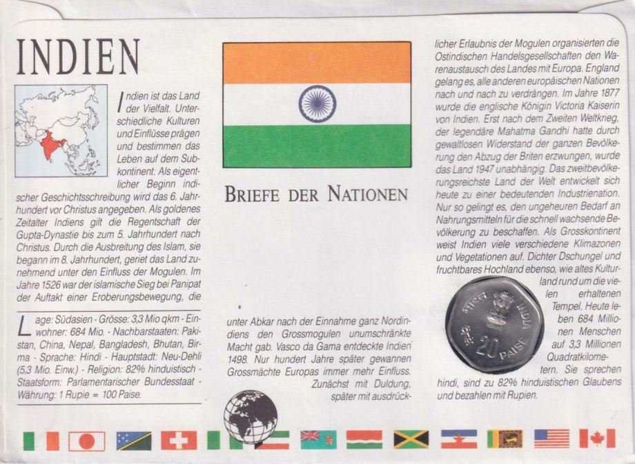 India 20 paise 1983 FAO UNC (A 2021 ) us STAMP + LETTER NUMISLETTER