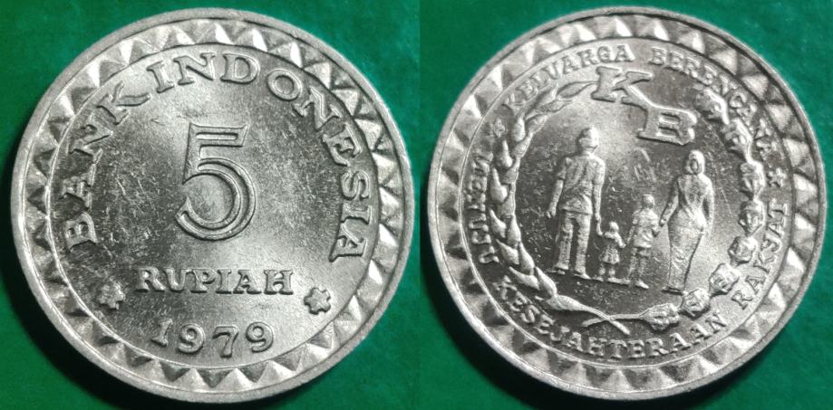 Indonesia 5 rupiah, 1979 FAO - Family Planning Program UNC ***/