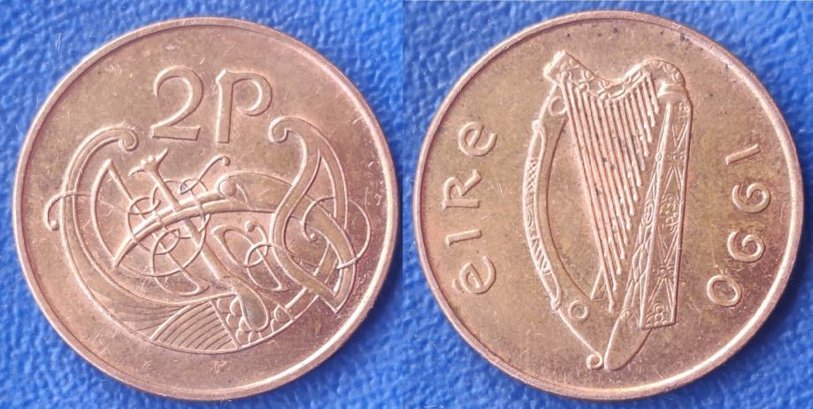 Ireland 2 pence, 1990 $$$/ 1,00 EURO !!!