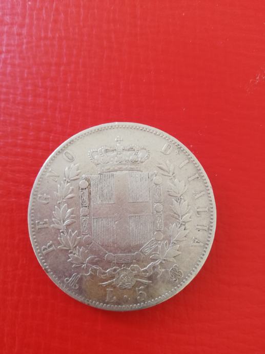Italia, 5 lira (srebro) 1871 25 gf (vf) Vittorio Emanuele