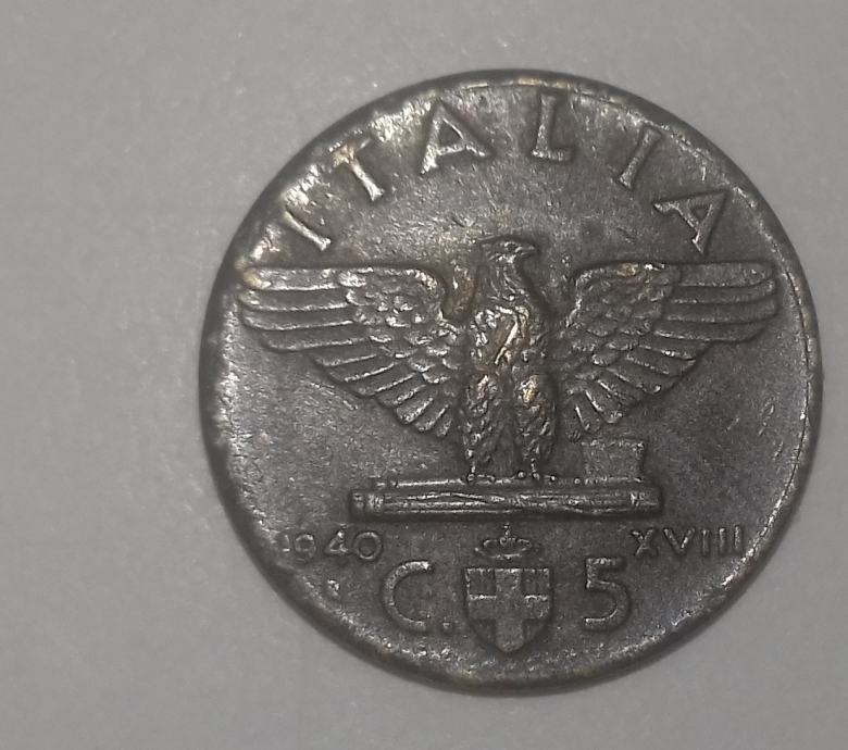 Kovanica od 5 centi iz 1940 godine.