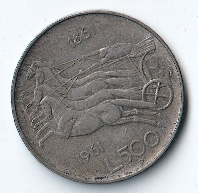 U ponudi talijanska srebrna prigodna kovanica od 500 lira iz 1961. godine, izdana povodom 100. obljetnice ujedinjenja Italije (1861–1961).