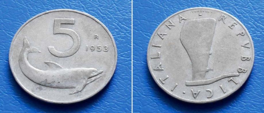 ITALIJA ITALY 5 LIRA 1953 R KM.92 - DUPIN i KORMILO