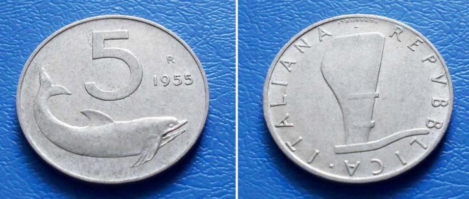 ITALIJA ITALY 5 LIRA 1955 R KM.92 - DUPIN i KORMILO