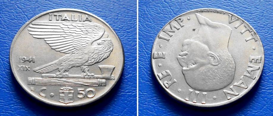 ITALIJA ITALY 50 CENTESIMI 1941 R XIX KM.76b - VITTORIO EMANUELE III