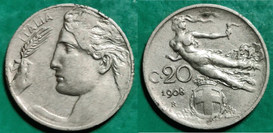 Italy 20 centesimi, 1908 / 1,30 EURO !!!