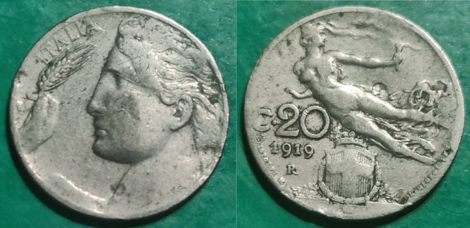 Italy 20 centesimi 1919 Old type: Woman with a ear rijetka godina ***/