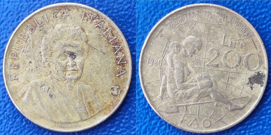 Italy 200 lire, 1980 FAO - International Women's Year / 0,20 EURO !!!