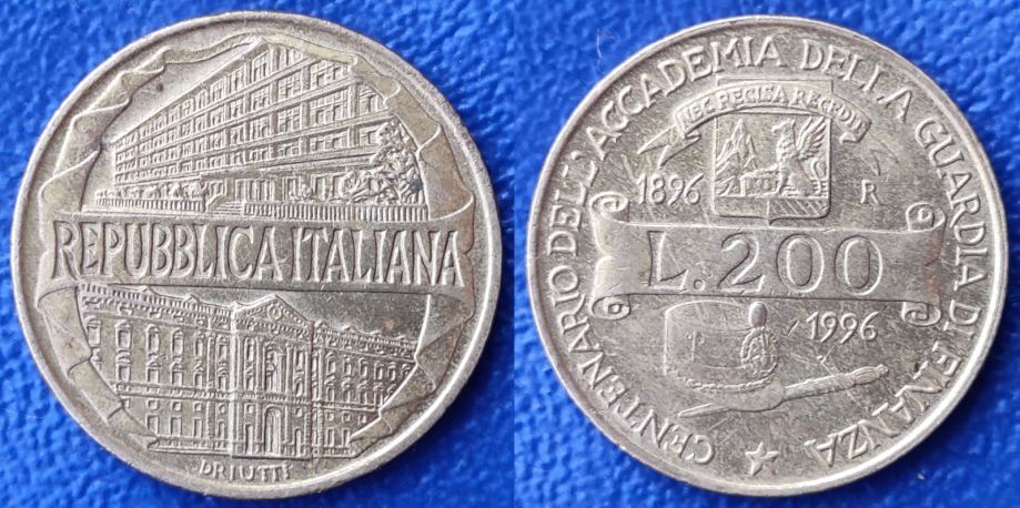 Italy 200 lire, 1996 100th Anniversary - Customs Service Academy '''/