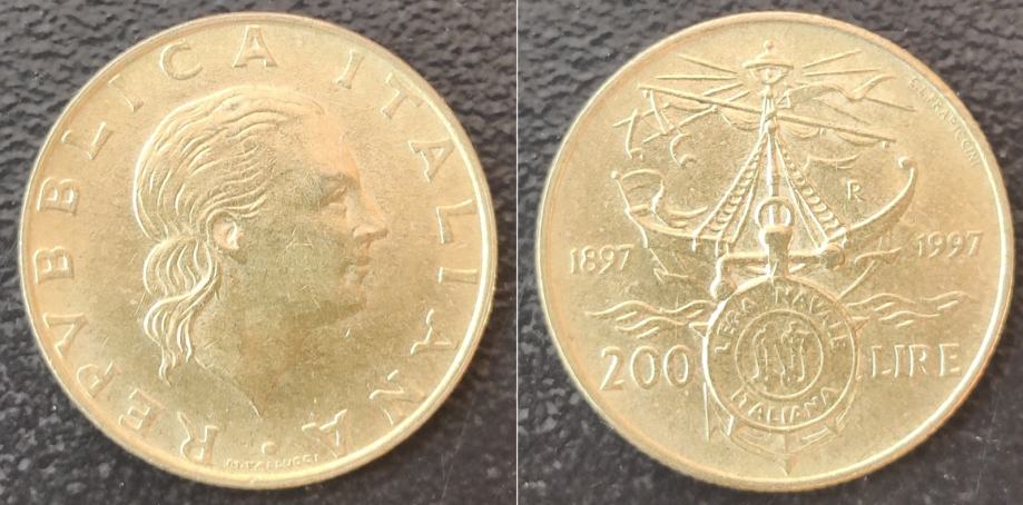 Italy 200 lire, 1997 100th Anniversary - Italian Naval League ***/ 1,0