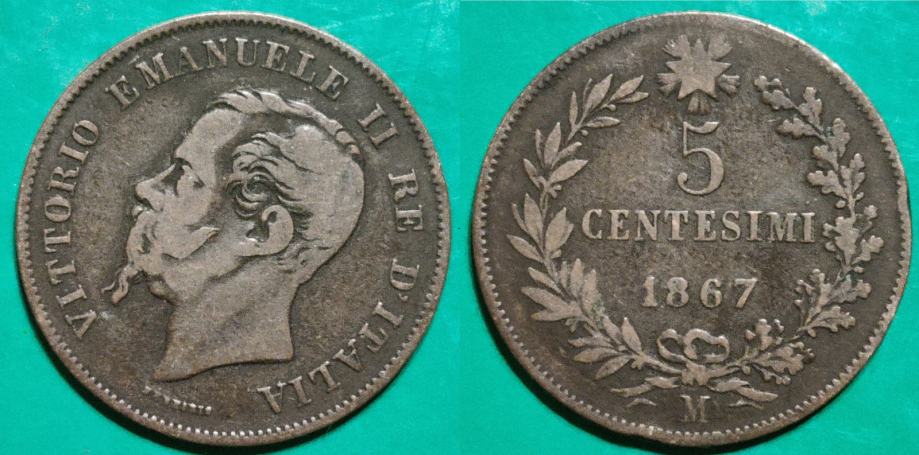 Italy 5 centesimi, 1867 "M" - Milan ***/