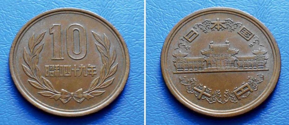 JAPAN NIPON 10 YEN 1974 (49) KM:73a - HIROHITO