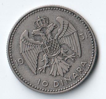 Revers nosi dvoglavog orla s grbom i natpis 10 DINARA 1931.