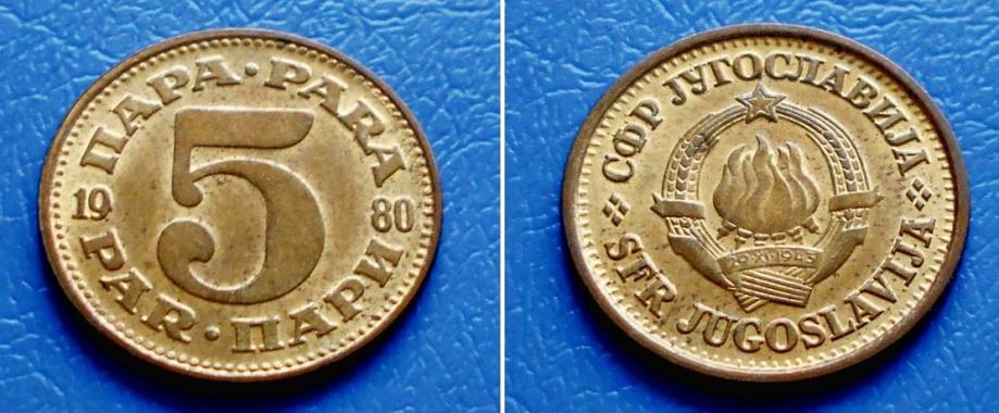 JUGOSLAVIJA SFRJ YUGOSLAVIA 5 PARA 1980 KM.43
