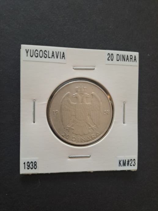 Jugoslavija (Yugoslavia) 20 Dinara 1938 srebro