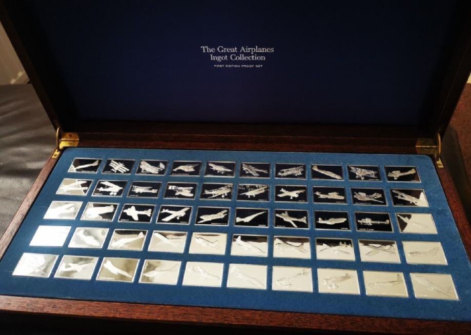 Vrlo rijedak set od 50 srebrnih poluga - The Great Airplanes iz 1978.-1982., ukupno je izdano samo 1799 kompleta