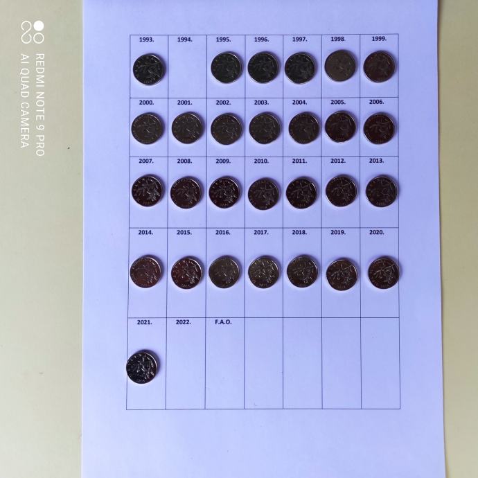 Komplet kovanica 20 lipa 1993 - 2021