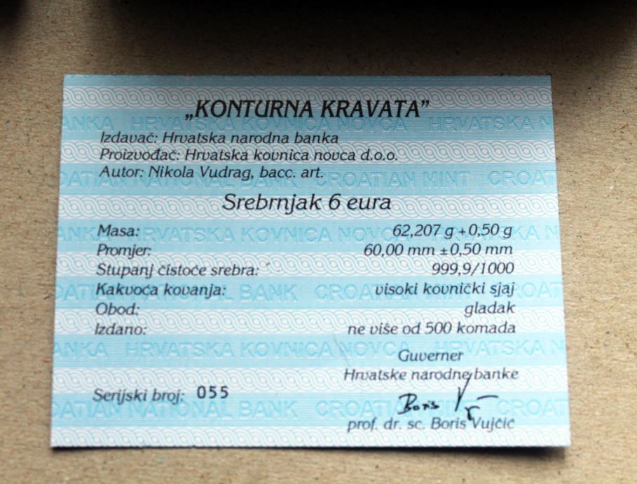 Kupac dobiva prvu hrvatsku numizmatičku euro kovanicu "Konturna kravata".