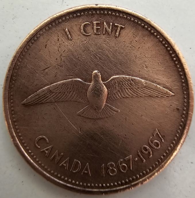 Kovanica 1 Cent (Kanada) 1967. 100. obljetnica države
