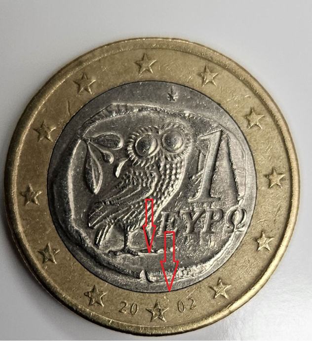 "Atenska sova" kovanica od 1 eura, rijetki primjerak sa slovom "S" u zvijezdi, primjerak iz 2002. godine koji ima čak i kovanu grešku. Posjedujem dvije takve kovanice, uz njih kovanica od 2 eura Grčke također ultra rijedak primjerak kovanice sa greškom i slovom "S" u zvijezdi.