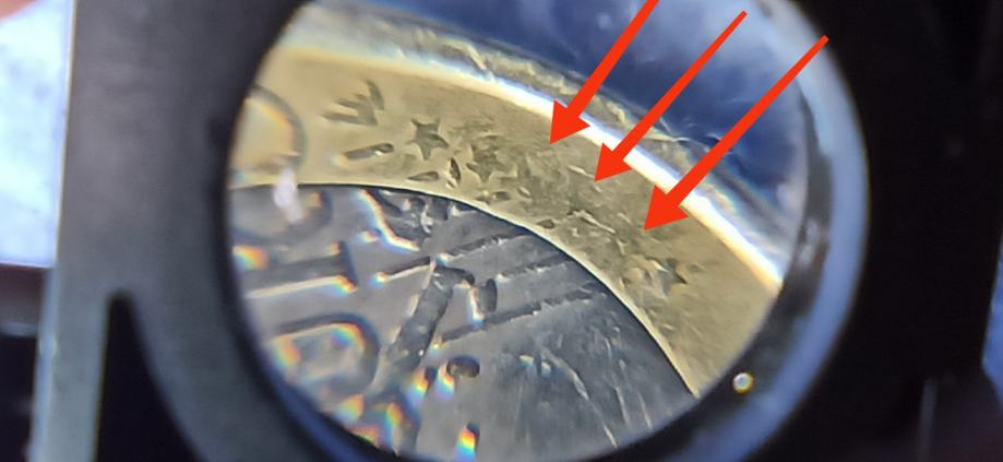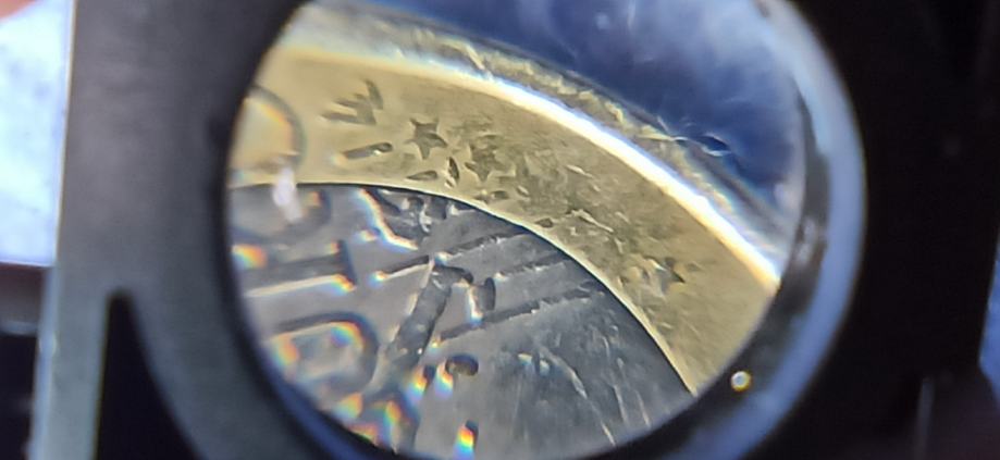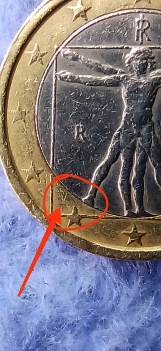 Na REVERSU u donjem dijelu ispod natpisa EURO ispod slova (O) vide se donekle dvije prve zvijezdice 1 i 2, zatim 3, 4, 5 zvijezdice nedostaju i onda se vidi zadnja 6 zvjezdica.