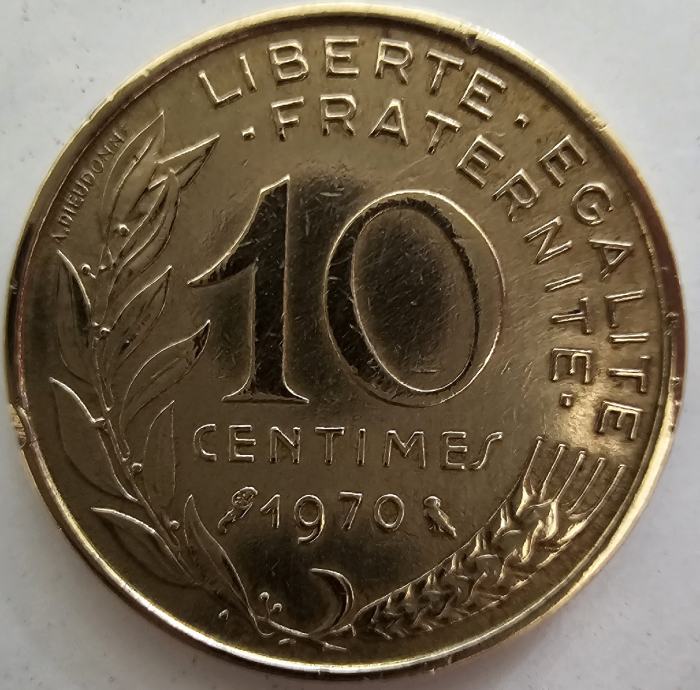 Kovanica 10 Centimes (Francuska) 1970.