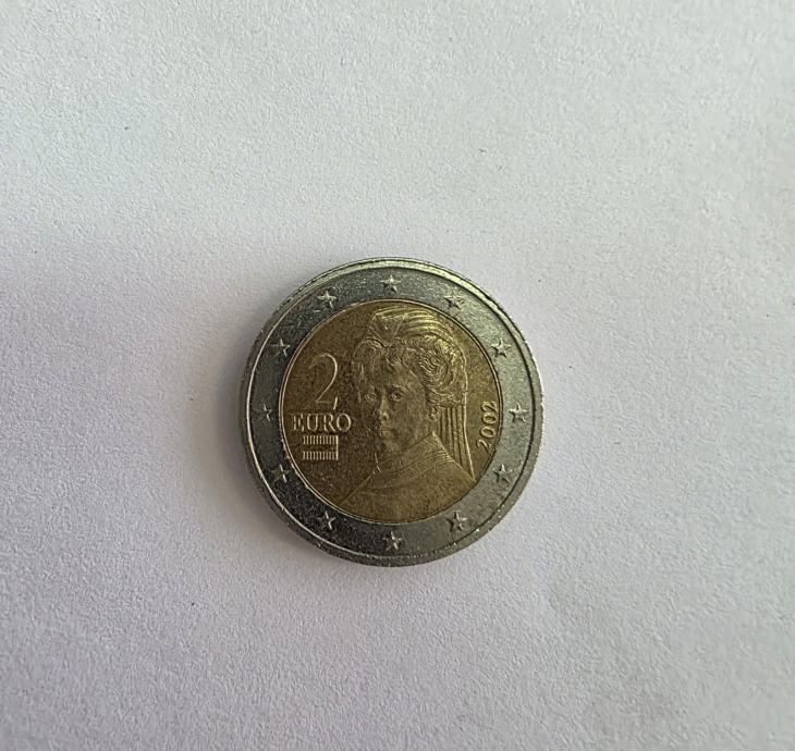 Ova kovanica od 2 eura iz 2002. godine s likom Berthe von Suttner.